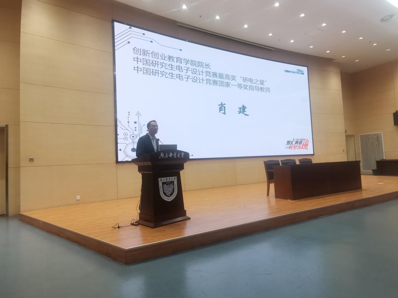 最后,创新创业教育学院院长 肖建教授做总结发言,他指出,研电赛是目前“中国研究生创新实践系列大赛”中最主要的赛事,赛事含金量高、学科交叉广泛、产业联系紧密,是开展研究生创新型人才培养的良好载体。他鼓励同学们踊跃报名参赛,全面提升自身的能力与素养,不负韶华,不负自己。