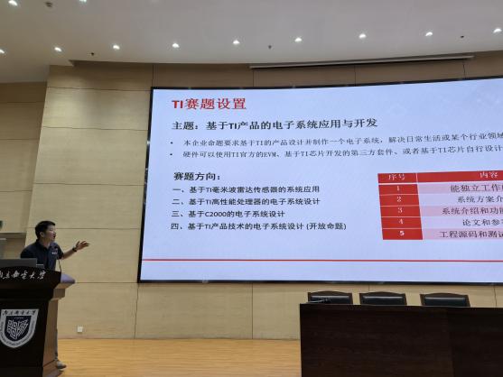 接着,研究生电子设计竞赛组委会的刘霆轩副秘书长向与会师生介绍了研究电赛的总体情况,包括研电竞赛赛题特色、竞赛内容、时间安排、历年参赛情况等;随后兆易创新的王霄经理、地平线的姜瑞滢经理、德州仪器的谢胜祥经理、优利德的陶金经理分别就各自企业赛题的内容做了细致的赛题解析,帮助学生更精准的备赛研电赛。随后,黑料 研电赛优秀指导教师代表万洪丹教授和研电赛国一获得者孔理想学长从不同角度分享了研电赛的宝贵参赛禁经验。