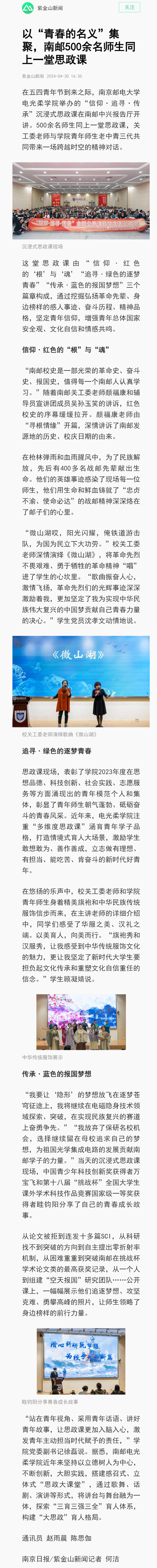 【南京日报客户端】以“青春的名义”集聚,南邮500余名师生同上一堂思政课
