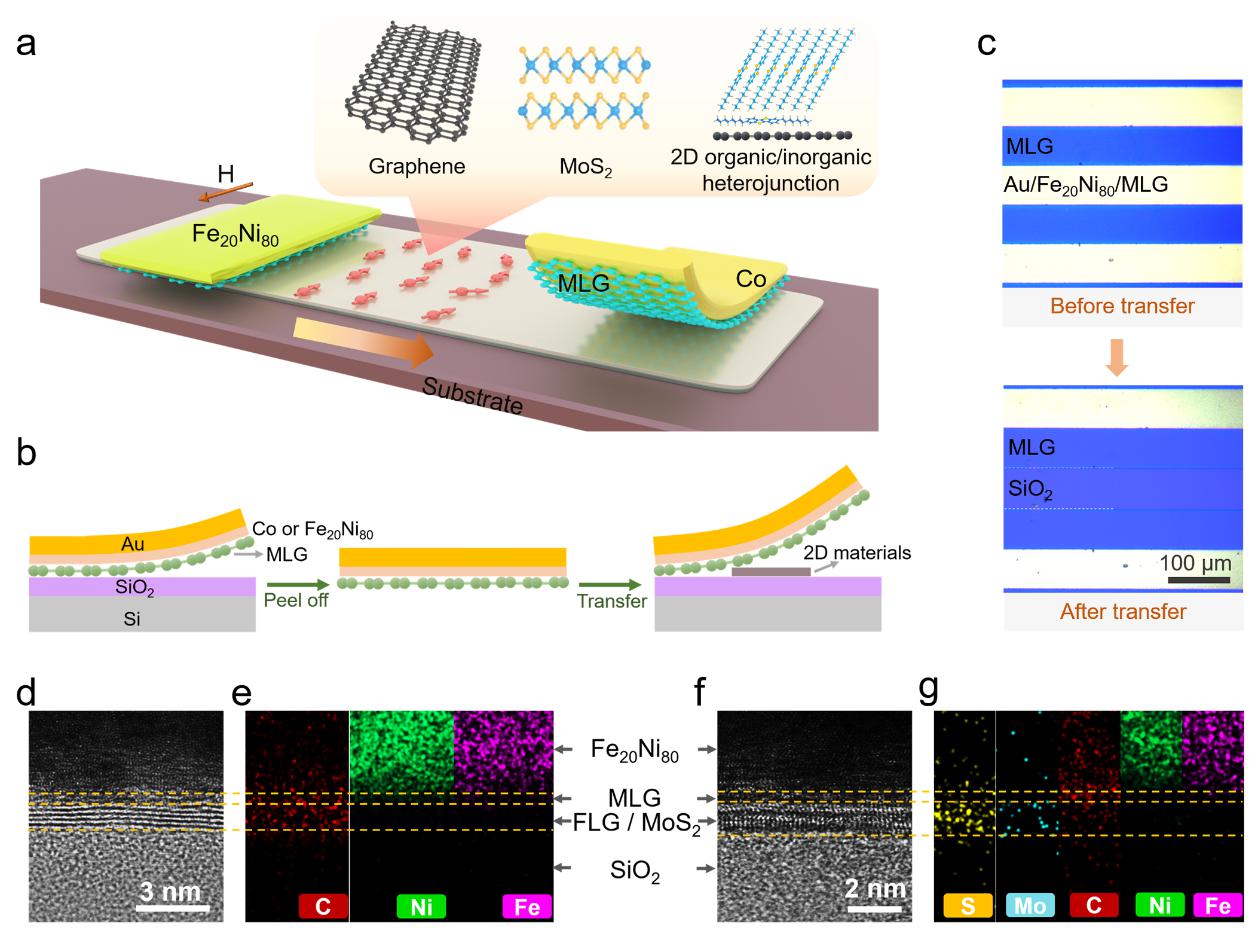 二维材料因其独特的物理结构和性质,在自旋电子器件领域一直备受关注,展现出重要的应用前景。为了充分发挥此类材料的性能,构建原子级质量的界面至关重要,这不仅有助于实现高效的自旋注入和传输,而且对于提高器件的磁阻效应和整体性能具有决定性作用。通过精确控制器件的自旋界面质量,可以优化自旋电子器件的电学特性,从而有效推动自旋电子学技术的发展和应用。然而,这在技术上是具有挑战性的。因为常规的制备工艺,例如电子束光刻和金属沉积,往往会在金属/二维材料界面引起缺陷、应变、无序和金属扩散,大大限制了高性能自旋电子器件的构筑。