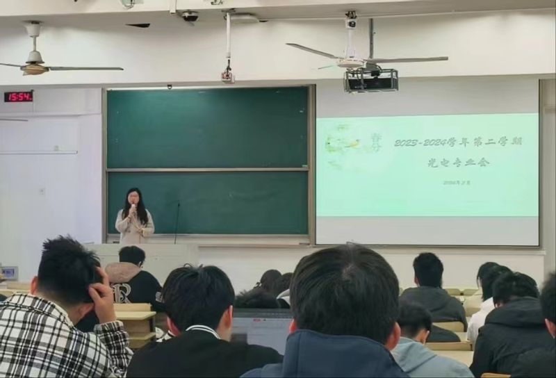 为明确阶段性目标,帮助同学们调整学习状态,以饱满的热情投入学习生活,并积极促进构建安全、和谐、文明的校园环境,3月,黑料 23级光电信息科学与工程开展专业会。专业会由祝腾辅导员主讲,23级光电专业同学参加。
