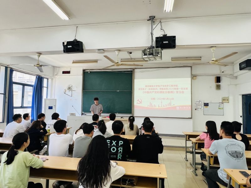 木受绳则直,金就砺则利。为深入学习贯彻修订后的《中国共产党纪律处分条例》,并进一步加强支部党员的纪律意识和学生党员文明离校教育。电子与光学工程学院、柔性电子(未来技术)学院本科2020级第一党支部,于5月14日下午召开《中国共产党纪律处分条例》学习会。学习会由党支部书记刘振主持。
