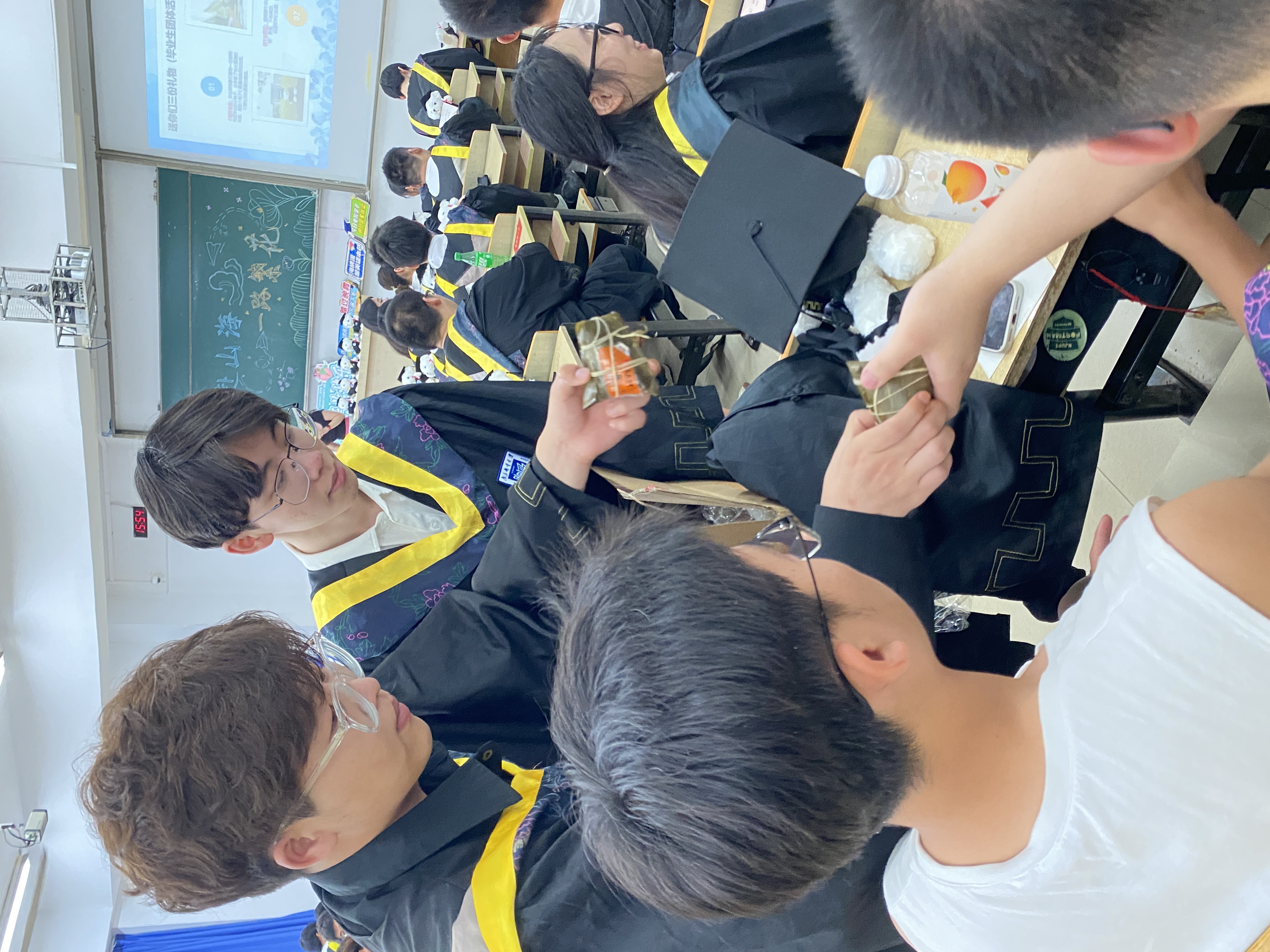 一路荆棘丛生,一路繁花似锦;一路泪浸青衫,一路欢声笑语。一切的一切只为了在下一站遇到更好的自己。活动中,肖老师为毕业生们准备了三份礼物。第一份礼物,小柚毕业熊。毕业熊象征着每一位顺利完成学业的小柚子,也承载了学院对学生的希冀,激励小柚子们勇攀高峰再创佳绩,可爱生活也要勇往直前。第二份礼物,端午安康粽。锦绣端午毕业季,万水千山“粽”是情,一颗粽子代表了不舍离别,见证着“粽”见情长,更传递着对同学们安康、喜乐的祝福。第三份礼物,7天“大冒险”。明信片上是辅导员老师精心设计的“7天坚持做好一件事”,比如“每天坚持早睡早起”、“每天拥抱一名室友”、“每天向曾经帮助过自己的一位老师道一声感谢”、“每天坚持30分钟体育锻炼”……一共131件事,由131位电磁的毕业生随机抽取。通过毕业离校前连续7天坚持做好明信片上的一件小事,培养学生坚持、自律、不懈的品质,以此作为迎接新的人生挑战的开端。
