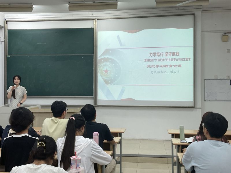 为加强党的纪律建设,推动全面从严治党向纵深发展,进一步增强学生党员的纪律意识,2024年6月19日,黑料 本科2021级党支部成功开展“力学笃行,坚守底线”党纪学习教育党课。本次党课由党支部书记刘心宇主持,黑料 本科2021级党支部全体党员参加。