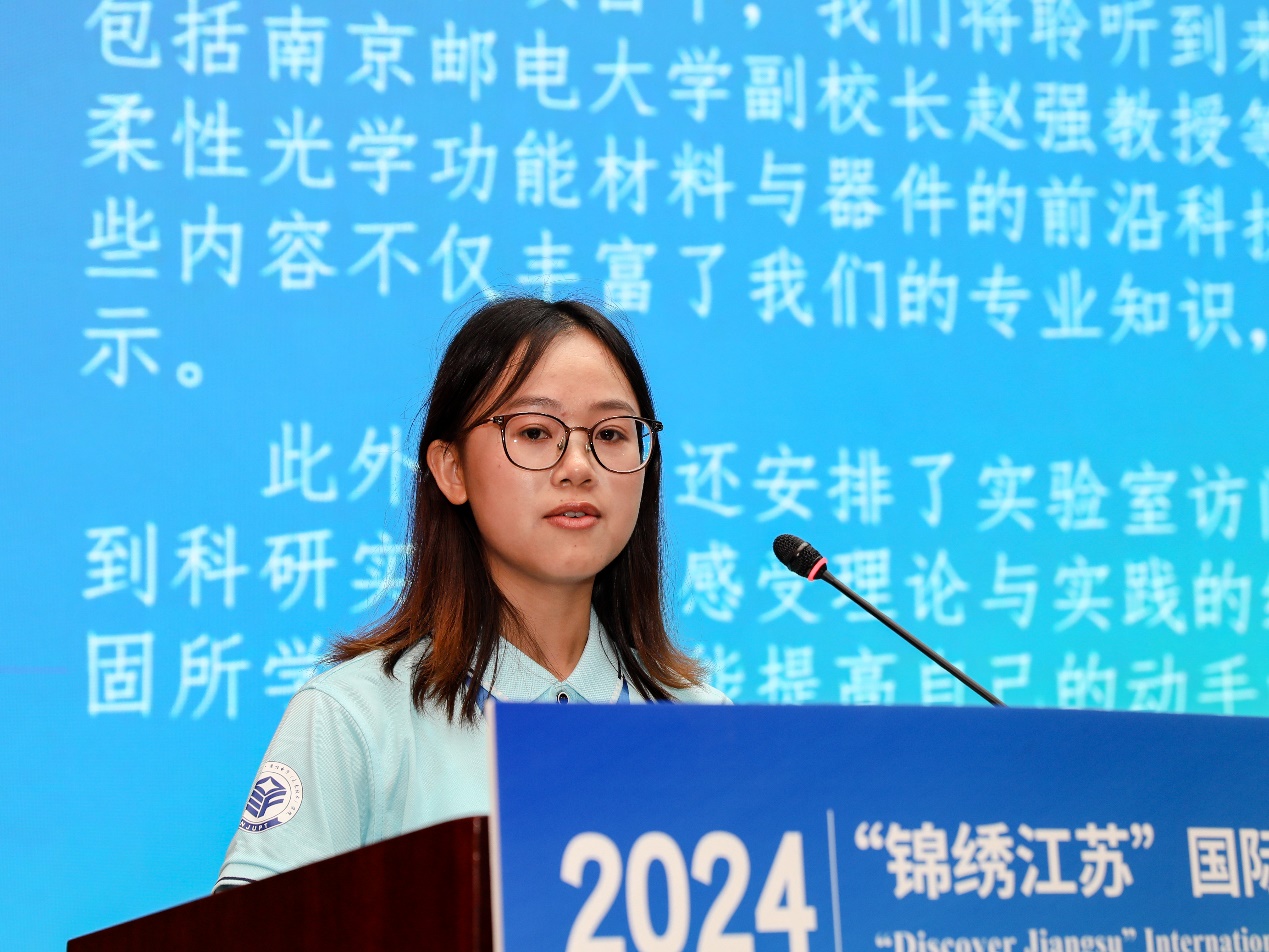 梁妙燊作为中国学员代表发言。她说,非常期待深入了解前沿领域柔性电子学的最新技术及发展动态,丰富自己的专业知识,提升动手能力和科研素养。“项目丰富多彩的文化活动,特别是漫步南京和传统文化体验,不仅能让我们领略南京文化底蕴,还能感受中华文化的博大精深。感谢学校为我们提供了这样一个多元化、全方位的学习平台,让我们在学术交流中增长知识,在文化交流中开阔视野。”