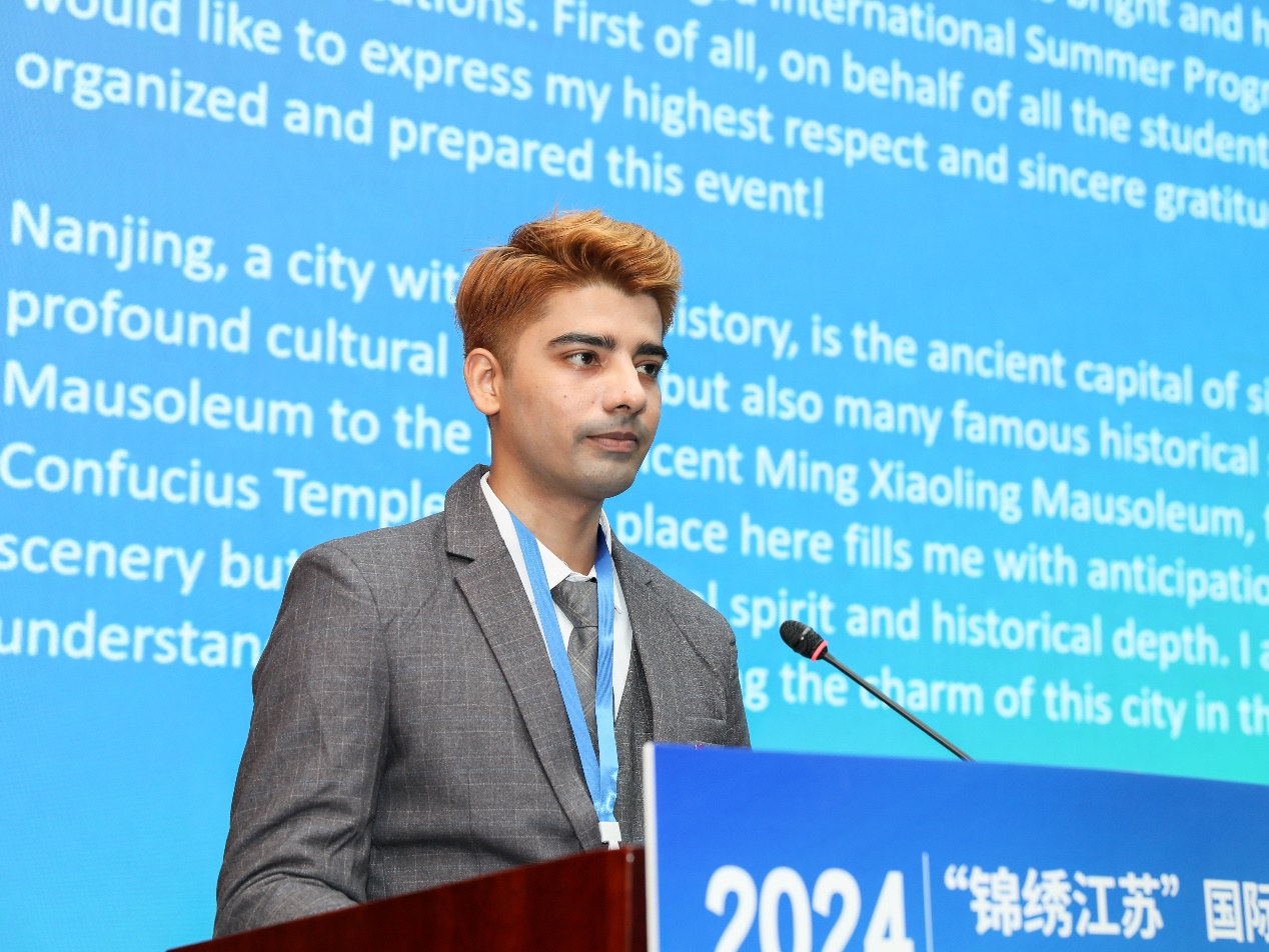 来自巴基斯坦的苏仁作为国际学员代表发言。他用流利的汉语表达了对黑料 的感谢,他说,“将珍惜这次难得的机会,和志同道合的伙伴们一起探索未知领域,锻炼专业技能、激发创新思维。非常期待通过此次项目丰富多彩的课程和活动,感受南京这座城市的魅力,了解中国的传统文化。”