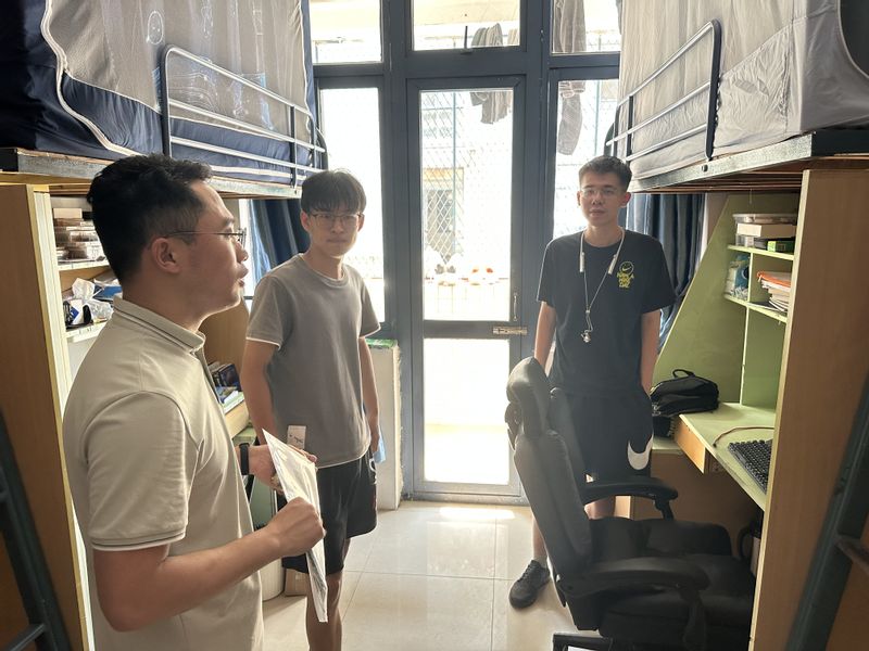 随后,全体学工线老师按照苑区、宿舍楼、年级、班级依次走访全部学生宿舍。走访过程中,徐磊书记亲切询问了同学们新学期感受,了解大家假期的生活状况及新学期规划,提醒同学们要增强安全防患意识,并耐心地解答学生们提出的各种困难和问题。辅导员老师们提醒大家尽快调整作息,营造良好寝室氛围,平时注意排查宿舍安全隐患,增强识骗防骗意识,重视宿舍卫生清洁,共同建设安全稳定的校园环境。同时,徐磊书记一行仔细查看各个宿舍的基础设施设备、消防安全、卫生环境等情况,确保同学们能生活的开心,住得安心。