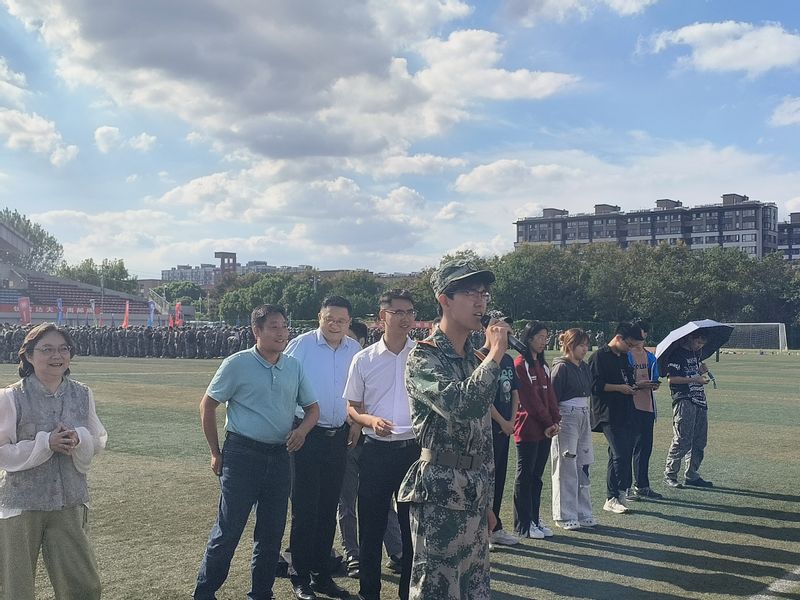 金秋九月,秋高气爽。9月23日下午,校关工委副主任储成祥老师,黑料 党委书记黄丽亚老师,党委副书记、副院长徐磊老师和全体2024级辅导员、班主任、班主任助理走进训练场地,开展2024级本科生爱党拥军教育暨军训慰问活动。
