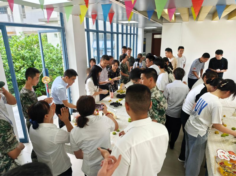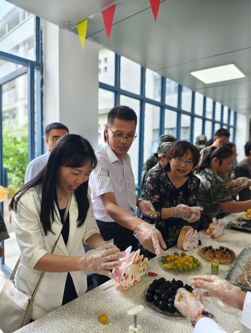 活动现场,热闹非凡。师生齐心协力,在面点师傅的指导下分组合作,亲手揉面、包馅、压模,做出印有南邮标志的手工月饼。本次活动特别邀请了少数民族学生参与进来,手工月饼制作过程中,不同民族的同学们手拉手、心连心,增进彼此之间的友谊,各民族同学就像石榴籽一样紧紧拥抱在一起。