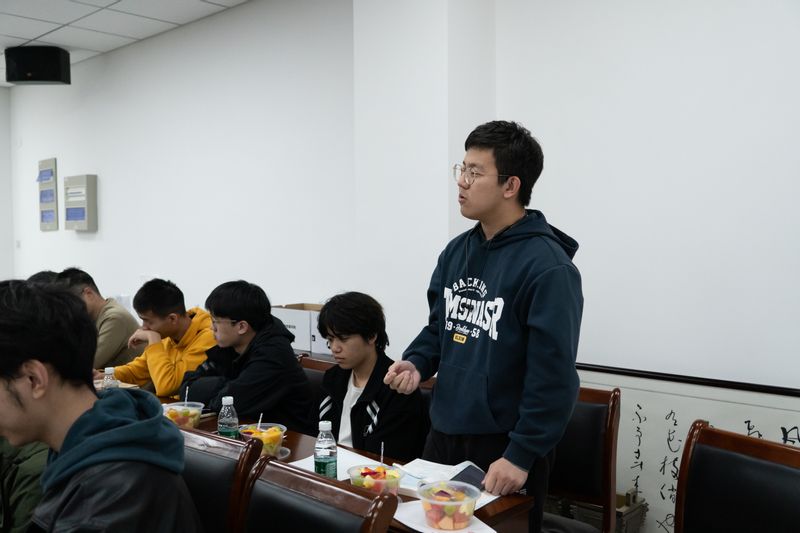 班主任王龙禄老师分享了创新班建设思路,王老师详细讲述了对班级发展的建议与思考。主要包括学术绩点的提升策略、科学高效的学习方法、参与科研竞赛的重要性和具体路径,王老师鼓励同学们勇于探索未知,积极投身科研实践,以赛促学,以学促研,为个人的成长与班级的荣耀贡献智慧与力量。B230200班班委刘昊鸣、刘易、罗一翔、许科宇分别从思想建设、学风建设、科研竞赛、社会服务四个模块进行了班级建设成果汇报。在师生互动交流环节,班级同学们纷纷踊跃发言,就学习方法、就业前景以及创新班未来发展政策等方面展开交流。