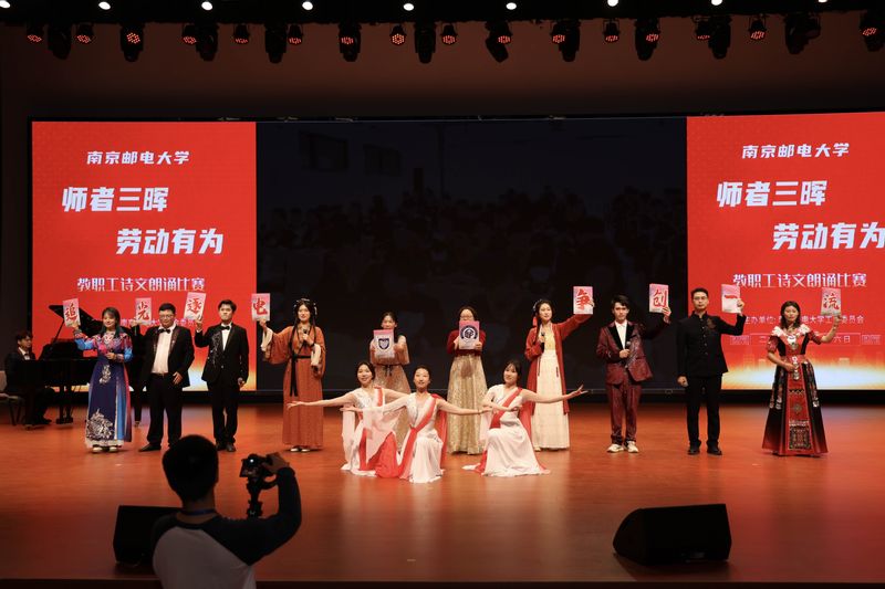 比赛现场,参赛教职工们或慷慨激昂,或温婉抒情,将黑料 优秀劳动者先进事迹与舒婷的《祖国啊,我亲爱的祖国》巧妙融合。黑料 教师团队以《电子之光,教育之魂》为载体,通过多层次的声音演绎与情景化舞台呈现,生动诠释了新时代教师“躬耕教坛、强国有我”的使命担当。他们默契的配合、真挚的情感与极具感染力的舞台表现,赢得现场评委与观众的热烈掌声。