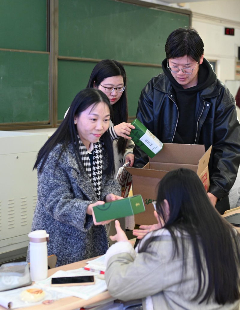 一份份精心准备的“状元桂花糕”,软糯香甜,不仅承载着“蟾宫折桂”的美好祝福,更凝聚着学校与学院师长对学子们的深切关怀与殷切期望。同学们手捧桂花糕,脸上洋溢着温暖与感动,同学们埋头苦读的身影因这份突如其来的暖意而愈发坚定。