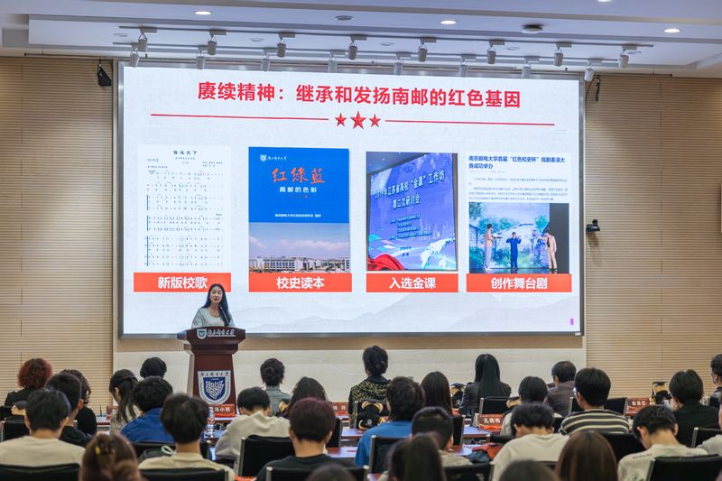 “南邮校史是一部光荣的革命史、奋斗史、报国史,值得每一个南邮人认真学习。”随着校关工委老师颜福康和辅导员宣讲团成员吴孙玉笑的讲述,红色校史的序幕缓缓拉开。颜福康老师由“寻根情缘”开篇,深情讲述了南邮发源地的历史、校庆日期的由来。“1942年,南邮的前身——战邮干训班在莒南县东甘霖村诞生。学校四个重要历史节点,都与四月份有着深厚渊源,因此最终确定校庆日是4月20日,这一天成为了南邮人共同的记忆与骄傲。”