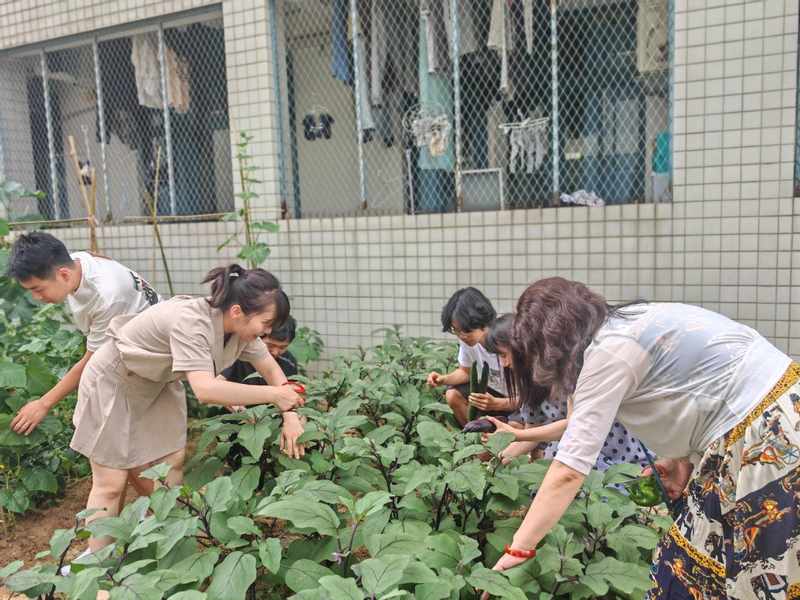 6月13日下午,黑料 关工委老教师徐立勤、2022级辅导员老师们与学院多名青年学生一同前往学校桃苑宿舍,开展采摘蔬菜劳动教育实践活动,老教师与学生们共同走进宿舍菜地,亲手采摘劳动的果实,共同体验丰收的快乐。