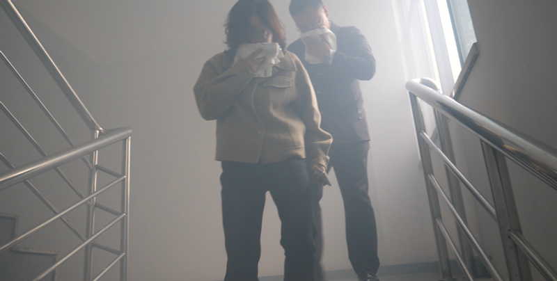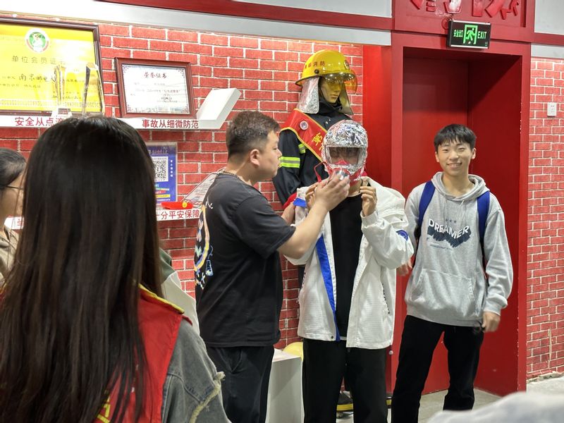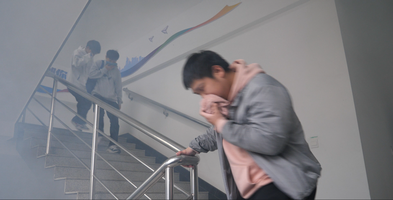 培训课后,举行了消防演练。保卫处薛宇飞老师详细讲解了消防演练注意事项,副处长吴学政宣布消防演练正式开始。伴随警铃响起,全体师生在应急指挥组的指挥下,用湿毛巾捂住口鼻,弓着身子,沿着指定路线,在浓烟下快速逃离;安全引导员在各个楼梯口进行引导,参演师生有序地撤离学科楼到达安全场地集合。在应急救援队清点人员后,最终确认全部安全疏散,演练圆满成功。疏散演练结束后,参与师生分为两组,一组前往学校西门广场进行灭火器使用演练,另一组前往学校安全教育与应急中心体验馆体验。