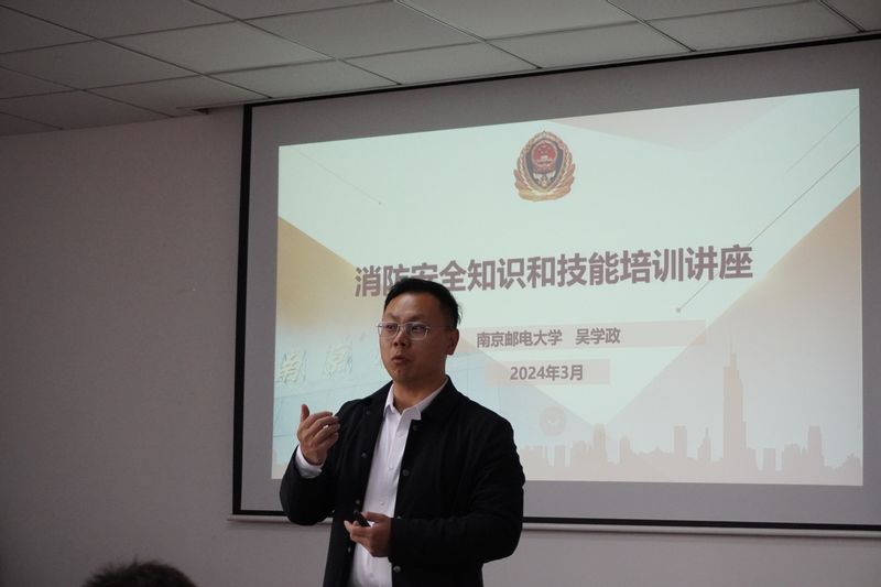 在教育培训环节,先由保卫处副处长吴学政老师进行授课,吴处长详细介绍了消防基础知识、火灾案例、消防法规和消防器材使用方法等;随后,校关工委副秘书长张和明老师对参与师生进行了安全教育;最后,学院党委副书记、副院长徐磊老师作了讲话,提了要求,并代表学院表达了对全院师生人身财产安全的关心与关爱。
